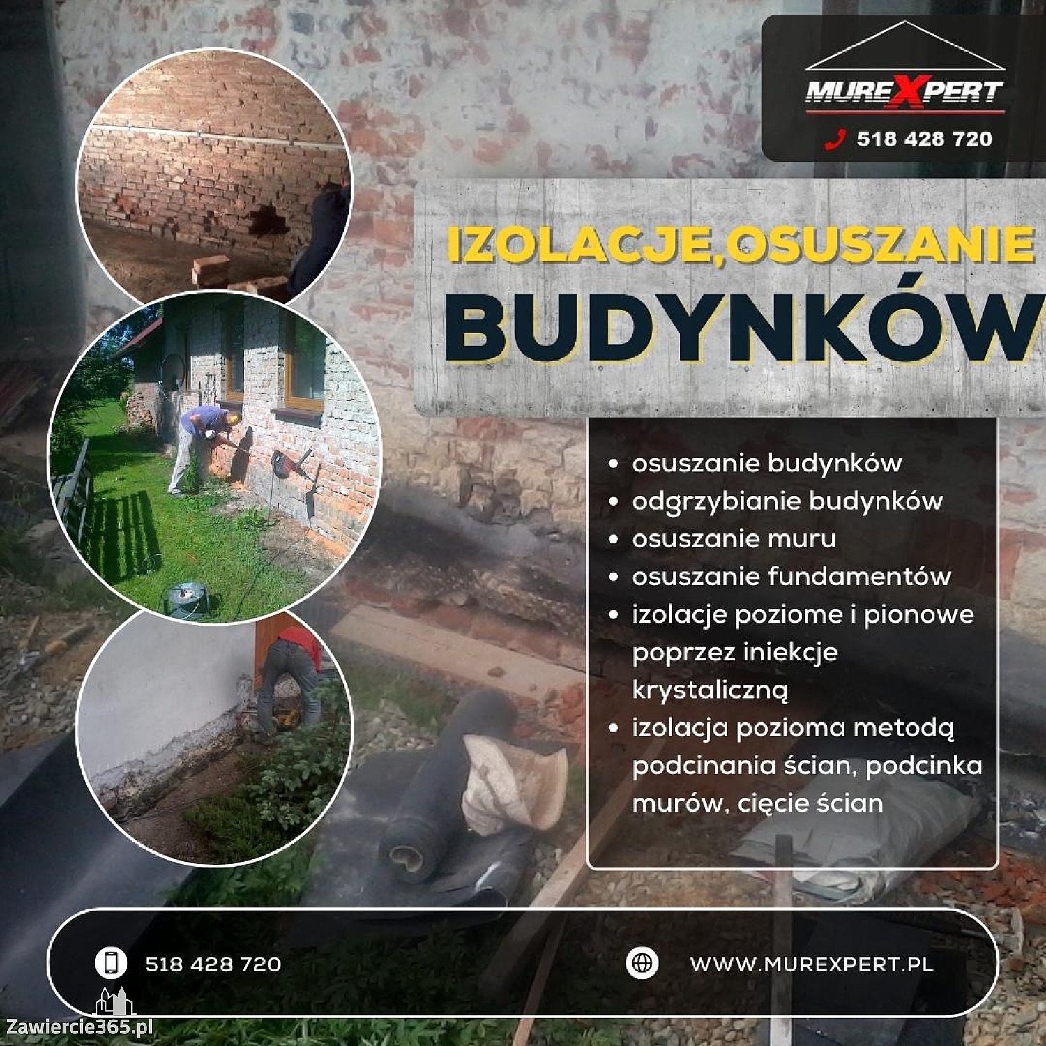 Szukasz profesjonalnej usługi drenażu, izolacji i osuszania piwnicy oraz fundamentów? Firma Murexpert to sprawdzony wykonawca specjalizujący się w kompleksowym osuszaniu budynków, murów, piwnic i fundamentów oraz w wykonywaniu trwałych izolacji przeciwwilgociowych. Na podstawie oferty dostępnej na stronie murexpert.pl możesz liczyć na rozwiązania dopasowane do potrzeb Twojego domu lub obiektu - wykonywane metodami nowoczesnymi oraz sprawdzonymi w praktyce.